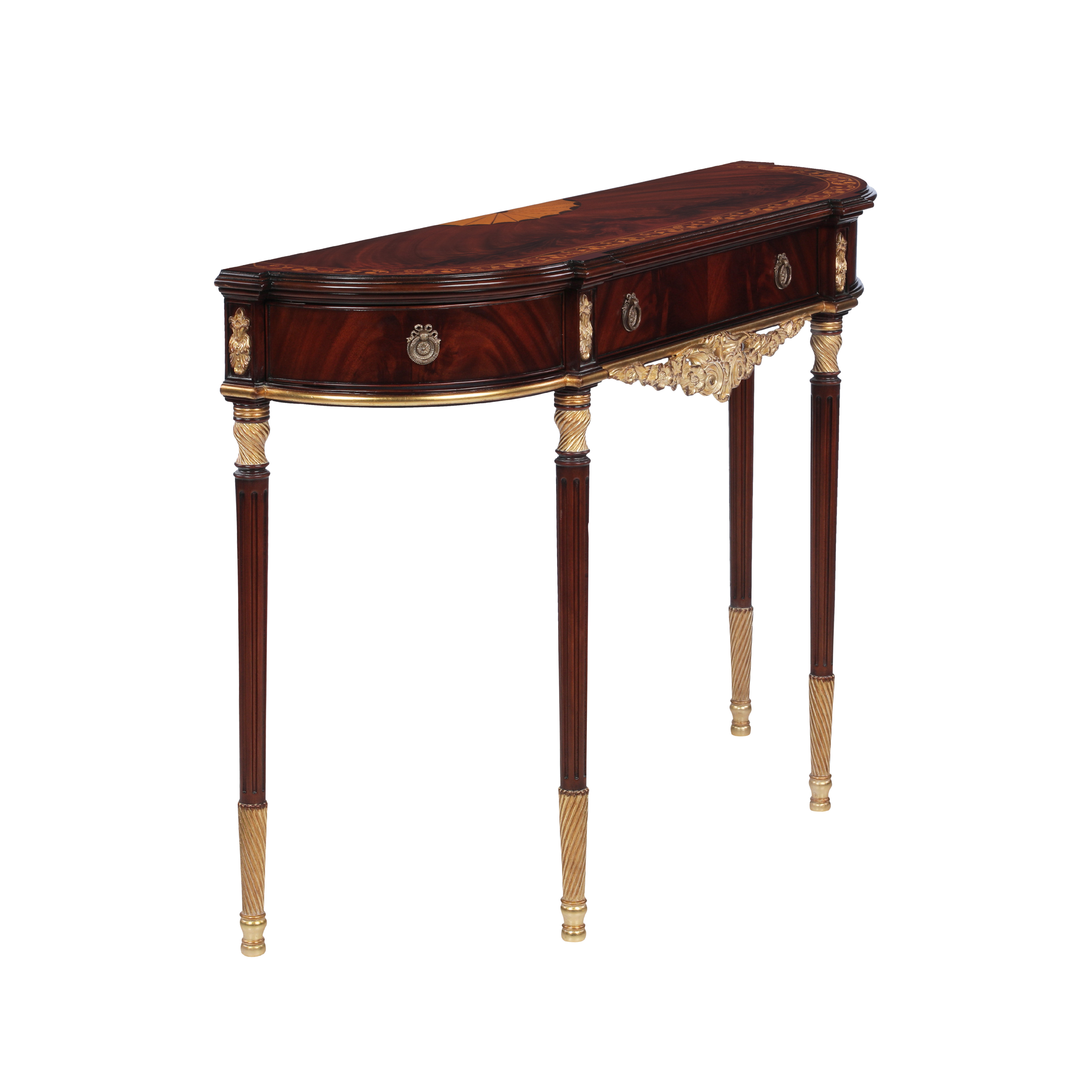 Wexford console, made of mahogany wood with hand applied gold leaf accents. Arriving spring 2026!